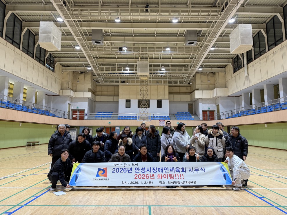 2026년 안성시장애인체육회 시무식 페이지 정보 작성자작성자 : 관리자 조회조회수 : 888회 작성일작성일 : 26-01-20 17:01 본문 2026년 안성시장애인체육회 시무식 목록 다음글2025 안성맞춤 발달장애인 가족 스포츠캠프 25.07.04